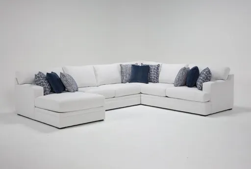 Designed and made exclusively by Living Spaces with comfort, style and practicality in mind, our Anacapa sectional checks all the boxes. Modular in nature, you'll find small and large configurations to fit your space perfectly. Deep and plush seating is hard to resist, while accent pillows add all that jazz and pizzazz with a timeless blue palette you'll love. Best of all, the high-performance, solution-dyed polyester cover is durable, bleach cleanable and fade resistant.