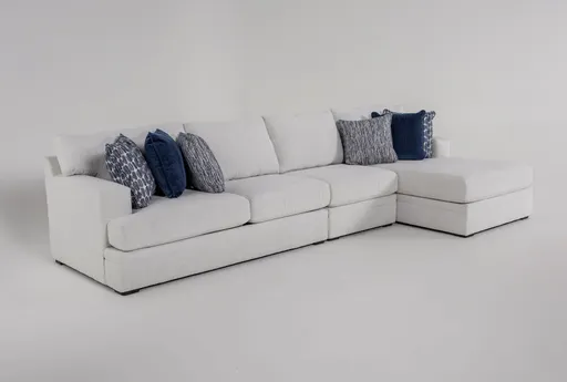 Designed and made exclusively by Living Spaces with comfort, style and practicality in mind, our Anacapa sectional checks all the boxes. Modular in nature, you'll find small and large configurations to fit your space perfectly. Deep and plush seating is hard to resist, while accent pillows add all that jazz and pizzazz with a timeless blue palette you'll love. Best of all, the high-performance, solution-dyed polyester cover is durable, bleach cleanable and fade resistant.