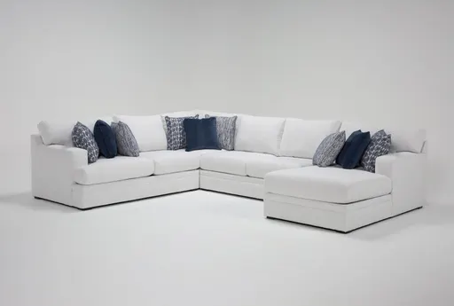 Designed and made exclusively by Living Spaces with comfort, style and practicality in mind, our Anacapa sectional checks all the boxes. Modular in nature, you'll find small and large configurations to fit your space perfectly. Deep and plush seating is hard to resist, while accent pillows add all that jazz and pizzazz with a timeless blue palette you'll love. Best of all, the high-performance, solution-dyed polyester cover is durable, bleach cleanable and fade resistant.