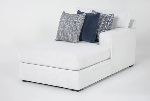 Designed and made exclusively by Living Spaces with comfort, style and practicality in mind, our Anacapa right arm facing chaise checks all the boxes. Modular in nature, the collection offers small and large configurations to fit your space perfectly. Deep and plush seating is hard to resist, while accent pillows add all that jazz and pizzazz with a timeless blue palette you'll love. Best of all, the high-performance, solution-dyed polyester cover is durable, bleach cleanable and fade resistant.