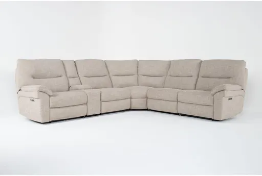 Experience ultimate comfort and convenience with the Anderson Sand Beige 130" 6 Piece Power Reclining Modular Sectional. This versatile piece is perfect for any living room, offering ample seating and a range of features to enhance your relaxation. Upholstered in 100% polyester high-performance fabric, this sectional provides a soft touch and durability.