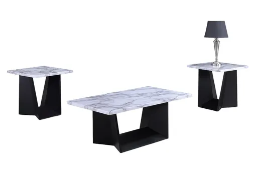 Enhance your living room with the Andrea 3 Piece Faux Marble Coffee Table Set. This modern set features a sleek white faux marble top that adds a touch of sophistication to any space. The rectangle shape and MDF construction ensure durability and style. Includes three pieces: one coffee table and two end tables. White faux marble top with MDF base for a contemporary look. Perfect for living rooms, family rooms, or lounges.