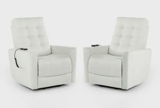 The Ansel Cream Fabric 33" Power Lift Recliner with USB Set of 2 offers both comfort and convenience. Perfect for your living room, this set of two recliners features power lift functionality to assist with standing up and sitting down. The cream fabric upholstery is complemented by sturdy components, ensuring long-lasting use.