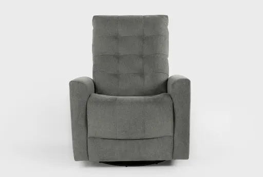 Ansel Grey Fabric 33-Inch Nursery Power Swivel Glider Recliner brings calm, practical seating to nurseries and compact living spaces. Upholstered in soft grey fabric with a grid-tufted high back and track arms, this single-seat recliner offers supportive, medium comfort for feeding, reading, or quick naps. Power recline and an adjustable headrest let you fine-tune your position, while the power swivel glider base provides smooth rocking and rotation and an integrated USB port keeps devices charged. A plywood frame with steel components and foam cushions balances everyday durability with approachable comfort and a clean, contemporary silhouette.