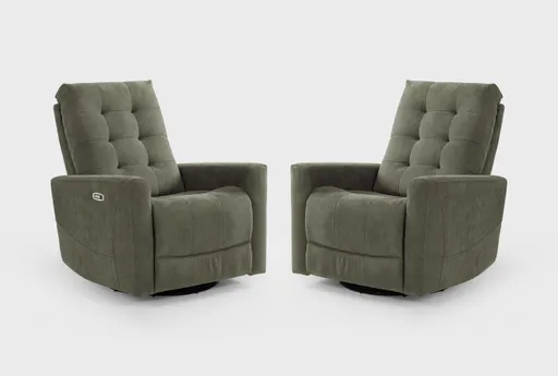 Ansel Olive Fabric 33" Nursery Power Swivel Glider Recliner With Power Headrest & Usb Set Of 2 | Furnzy.com - Shop local furniture stores in one place