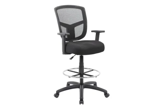 Elevate your office experience with the Apex Black Mesh Adjustable Arm Drafting Stool With Footring. Its modern design and practical features make it a perfect addition to any workspace. The stool's adjustable arms, swivel capability, and footring provide comfort and functionality for long hours of use.