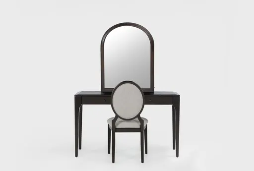 Thoughtfully designed and carefully developed by Living Spaces, our Apolo bedroom makeup vanity desk with USB, LED lighted vanity mirror and chair introduce classic style with a minimalist twist. Striking a balance between refined form and graceful details, the set offers a modern traditional look and feel. You'll relish the softened elements and clean, airy elegance. Solid wood and oak veneer are decked in a rich dark brown finish that lends depth and texture, while diamond shaped hardware reveals a subtle patina. USB charging allows you to conveniently power up, while lighting and storage help create the ideal makeover experience.