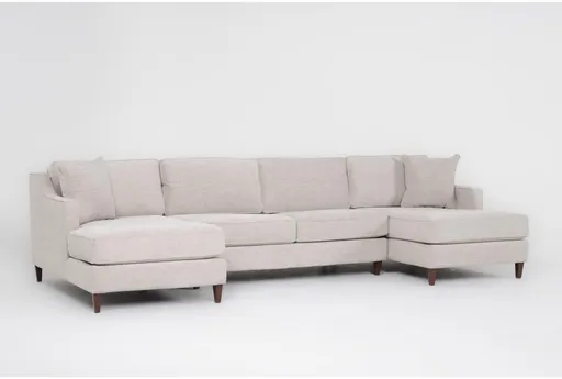 Apolo Dove 136-inch Double Chaise Lounge With Armless Loveseat brings generous, modern modular seating to the living room with a low-profile, symmetrical silhouette. Upholstered in a soft beige chenille-blend fabric, the oversized double chaise and armless loveseat combine deep-seated comfort with loose back cushions for relaxed lounging. Clean lines, a block-style base and tapered wood legs give a mid-century modern influence that reads contemporary without feeling fussy. The armless layout keeps the profile clean and maximizes usable seating for family-size gatherings.