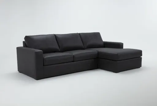 Araceli II Charcoal Grey Black Vegan Faux Leather 2 Piece Full Sleeper Sectional With Right Arm Facing Chaise | Fabric | Furnzy.com - Shop local furniture stores in one place