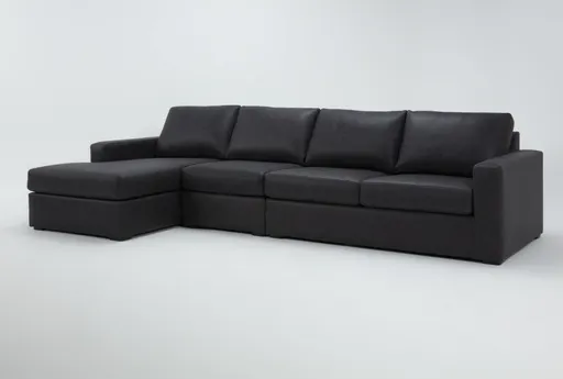 Araceli II Charcoal Grey Black Vegan Faux Leather 3 Piece Sectional With Left Arm Facing Chaise | Fabric | Furnzy.com - Shop local furniture stores in one place