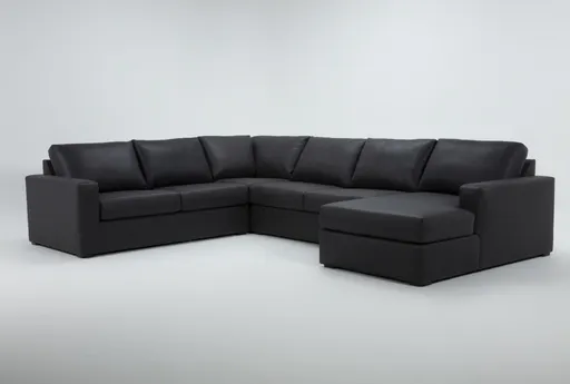 3. Araceli II Charcoal Grey Black Vegan Faux Leather 4 Piece Sectional With Right Arm Facing Chaise