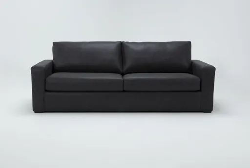 The Araceli II Charcoal Grey Black Vegan Faux Leather 95" Sofa is a perfect addition to any modern living room. Its sleek design and comfortable cushions make it an ideal spot for relaxation. The loose, reversible back cushions add versatility and ease of maintenance.