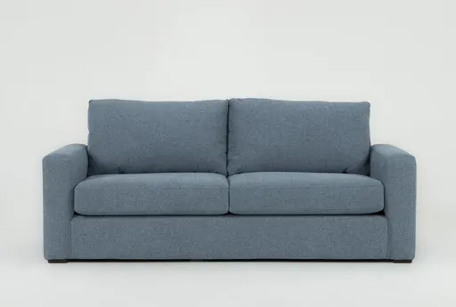 Araceli II French Blue Condo 86" Queen Sleeper Sofa pairs modern, boxy lines with practical comfort, converting easily to a queen-size bed for overnight guests. Upholstered in 100% polyester chenille, it delivers medium firm support that suits both lounging and sleeping in the living room. The low squared arms and clean profile make it simple to style while keeping the focus on comfort and everyday use.
