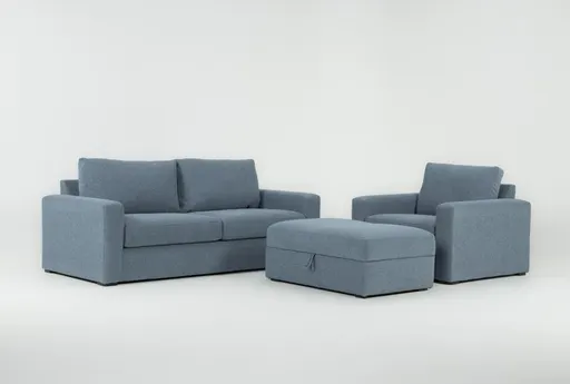 Araceli II French Blue 3 Piece Condo 86" Queen Sleeper Sofa Chair & Ottoman Set brings modern, adaptable seating to the living room with a queen-size sleeper built into the sofa. Upholstered in 100% polyester chenille in a French blue hue, the pieces offer a soft, textured feel that’s comfortable for lounging and welcoming for guests. Medium firm cushions provide supportive seating for everyday use and convert easily for overnight stays, while the matching chair and ottoman expand seating and function in smaller spaces.