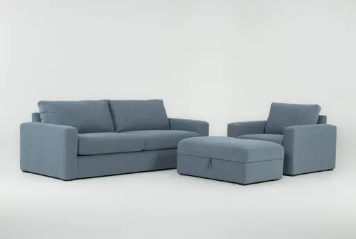 Araceli II French Blue 3 Piece 95" Queen Sleeper Sofa Chair & Ottoman Set pairs a roomy 95-inch queen sleeper sofa with a matching chair and ottoman to deliver flexible seating and a guest-ready bed for your living room. The French blue chenille upholstery in 100% polyester is soft to the touch, and the medium firm seat offers comfortable support for daily lounging or overnight stays. The ottoman doubles as extra seating or a footrest, so you can easily create a layered, inviting seating area.