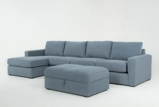 Araceli II French Blue 3 Piece Sectional With Left Arm Facing Chaise & Ottoman is a modern, versatile seating solution that brings relaxed style to the living room. Upholstered in 100% polyester chenille, it delivers a soft textured surface with a medium firm seat that supports everyday sitting and lounging. The left facing chaise and separate ottoman expand seating options and make the three piece configuration easy to arrange for entertaining or quiet nights in.