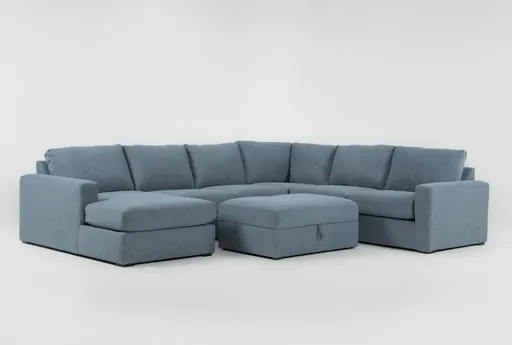 Araceli II French Blue 4 Piece Sectional With Left Arm Facing Chaise & Ottoman brings modern, livable comfort to your living room with its French blue chenille upholstery in 100% polyester. The left-facing chaise and matching ottoman give you flexible seating for lounging and entertaining, while medium firm cushions offer dependable support for everyday use. Clean lines and a soft textured fabric make it easy to style with pillows and throws for a relaxed, pulled-together look.