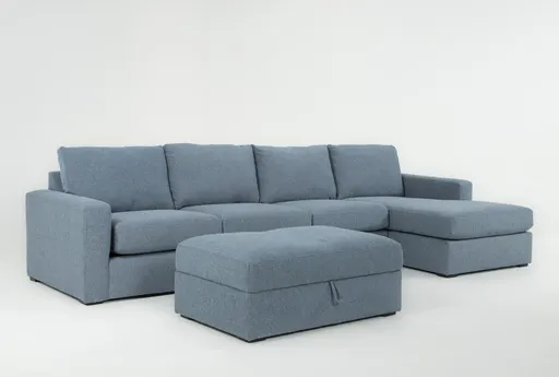 Araceli II French Blue 3 Piece Sectional With Right Arm Facing Chaise & Ottoman is a modern three-piece living room set upholstered in chenille, 100% polyester, for a soft, textural feel. Medium firm seating and a right-facing chaise deliver supportive comfort for everyday lounging, while the ottoman offers flexible additional seating or a place to put your feet up. Track arms and clean lines make this sectional easy to style and pair with pillows and throws to create a relaxed, on-trend space.