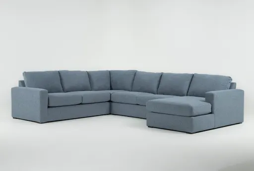 Araceli II French Blue 4 Piece Sectional With Right Arm Facing Chaise brings a relaxed, modern look to the living room with its French blue chenille upholstery and clean-lined silhouette. Its medium firm cushions offer supportive seating for everyday lounging, while the four-piece modular layout lets you arrange the right arm facing chaise to suit conversation areas or TV viewing. Upholstered in chenille fabric with 100% polyester content, this sectional balances comfort and easy care for family life and casual entertaining.
