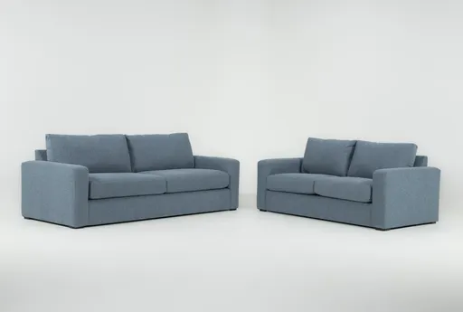 Araceli II French Blue 2 Piece 95" Sofa & Loveseat Set brings modern form and relaxed comfort to the living room with French Blue polyester chenille upholstery and wide block arms. The set pairs a 95" sofa with a coordinating loveseat and features medium-firm seat cushions for supportive everyday seating, while the low back keeps the profile clean and easy to style. Durable polyester chenille and thoughtful proportions make this set a practical choice for anchored conversation areas and family rooms.