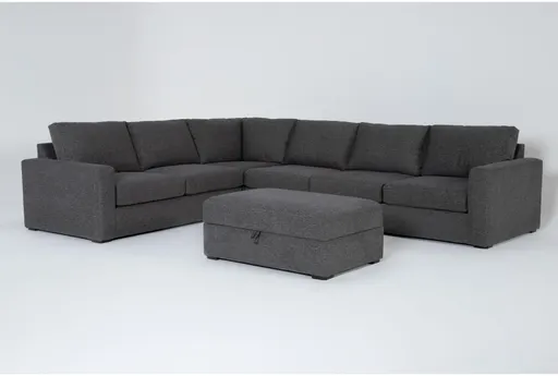 Araceli II Pewter Grey Black Fabric Modular 4 Piece L-Shaped Sectional & Ottoman | Loose Reversible Back | Furnzy.com - Shop local furniture stores in one place