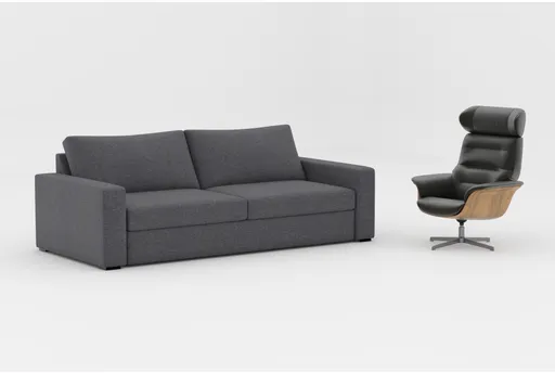 Made by and for Living Spaces, our Araceli fabric sofa boasts clean, modern lines and showcases a high level of style, comfort, quality and value. You'll love the track arms, as well as the loose and reversible cushions that ensure even wear and longevity. Multiple color and configuration options allow you to choose what's best for you and your space. The Amala leather swivel arm chair with adjustable headrest pairs perfectly.