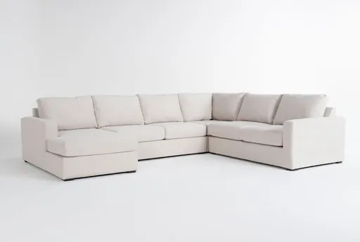 Araceli II Sand Beige White Fabric Modular 138" 4 Piece Full Memory Foam Sleeper U-Shaped Sectional with Left Arm Facing Chaise | Furnzy.com - Shop local furniture stores in one place