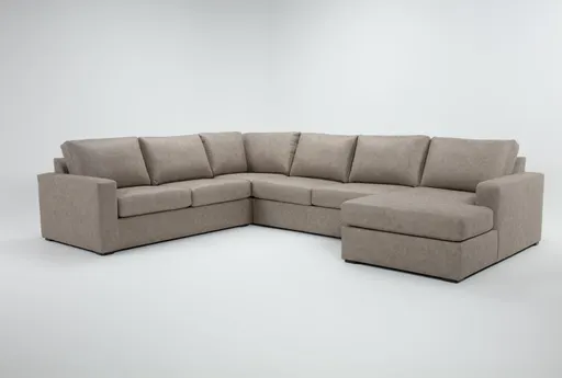 Araceli II brings modern living room furniture appeal to a roomy layout with a low-profile silhouette, slim track arms and a right-facing chaise. Covered in polyurethane faux leather with polyester backing, the upholstery provides a smooth, wipe-clean surface in warm taupe and beige with brown undertones that blends into neutral palettes. Deep-seated foam seat cores and bench-style seating paired with removable back cushions create a comfortable lounging experience while preserving sleep comfort for guests. This four-piece L-shaped sleeper includes a full pull-out mattress mechanism so the sectional converts easily into an overnight bed without sacrificing everyday support.