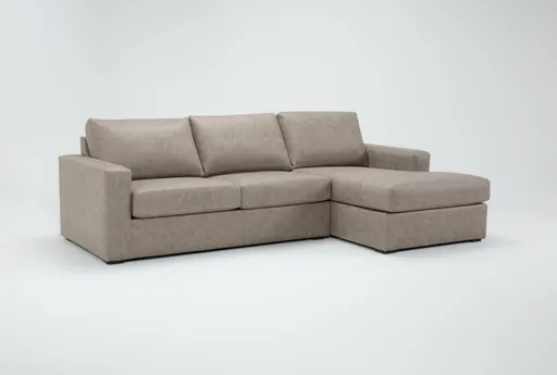 The Araceli II Taupe Beige Brown Vegan Faux Leather 2 Piece Sectional with Right Arm Facing Chaise offers a stylish and modern addition to your living room. Upholstered in taupe faux leather, this sectional provides both comfort and durability. Its small size is perfect for cozy spaces while still providing ample seating for family and friends.