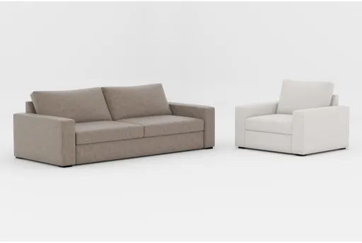 Araceli II Taupe Beige Vegan Faux Leather 95" Queen Sleeper Sofa|Araceli II Sand Beige Fabric Oversized Armchair | Furnzy.com - Shop local furniture stores in one place