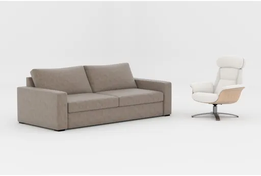 Made by and for Living Spaces, our Araceli faux leather sofa boasts clean, modern lines and showcases a high level of style, comfort, quality and value. You'll love the track arms, as well as the loose and reversible cushions that ensure even wear and longevity. Soft, durable and easy to clean, vegan faux leather upholstery is a charming, price-conscious alternative to the real deal. Multiple color and configuration options allow you to choose what's best for you and your space. The Solana reclining swivel arm chair with adjustable headrest pairs perfectly.