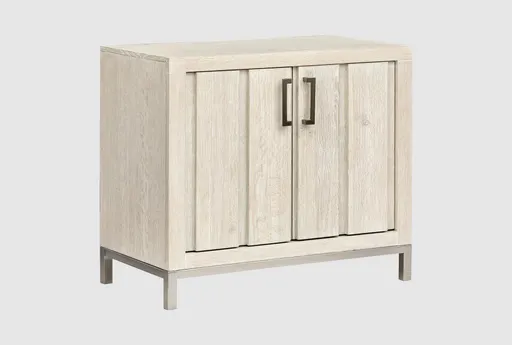 The Aralyn Natural Wood 2-Door Nightstand is a perfect addition to your bedroom. Made from hardwood solids, this classic piece brings both functionality and charm. Its white oak finish complements any decor. Features two doors for ample storage space. Constructed from durable hardwood solids. Perfect for bedrooms with its neutral white oak color.