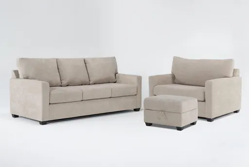 Introducing the Aramis Cream Beige Fabric Sofa, Twin Memory Foam Arm Chair Sleeper, and Storage Ottoman Set, designed to enhance your living room with its modern appeal and versatile functionality. This set features a reversible loose back and is upholstered in 100% polyester cream fabric, creating a soft, inviting atmosphere.