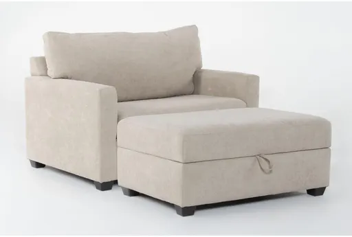 Aramis Cream Beige Fabric 53" Twin Memory Foam Armchair Sleeper And Large Storage Ottoman | Reading | Solid | Furnzy.com - Shop local furniture stores in one place