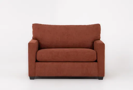 Aramis II Cinnamon 53" Twin Sleeper With Memory Foam Mattress brings casual comfort to the living room with an oversized twin sleep surface and a memory foam mattress that offers supportive pressure relief for overnight guests. Upholstered in 100% polyester fabric in a warm cinnamon tone, it functions as a comfortable chair by day and converts quickly to a bed when you need an extra sleeping spot.