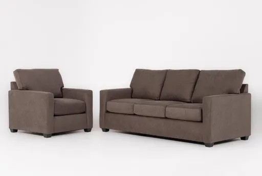 The Aramis II Otter Grey 83" 2 Piece Sofa & Chair Set brings comfortable, casual seating to the living room with a matching sofa and chair designed for everyday use. Upholstered in otter grey fabric (100% polyester), the set offers easy-to-live-with color and resilient performance for high-traffic living rooms. Track arms and a clean, boxy silhouette provide a straightforward profile that pairs well with a range of decor.