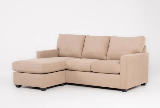 The Aramis II Sand 83" Sofa With Reversible Chaise pairs casual comfort with a flexible layout thanks to its reversible chaise that can be moved to either side. Upholstered in sand 100% polyester fabric, it offers easy-care performance and supportive seat cushions backed by a sturdy frame for everyday use. At 83 inches, it fits well in most living rooms and invites lounging, movie nights, and relaxed gatherings.