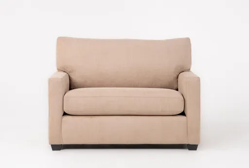 The Aramis II Sand 53" Twin Sleeper With Memory Foam Mattress pairs casual comfort with smart functionality so you can host overnight guests without sacrificing living space. A pressure-relieving memory foam mattress unfolds from a compact twin frame, while durable polyester upholstery in soft beige resists daily wear and is simple to spot clean. Seat cushions wrapped in dacron preserve loft and comfort for daytime lounging and support for nighttime sleeping. This piece reads as modern living room furniture but is equally at home in an office or dorm when you need a reliable guest bed and seating solution.