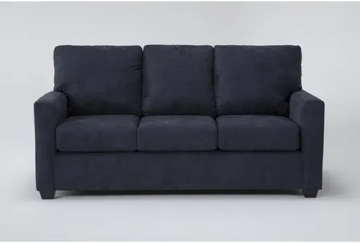 The Aramis Midnight Blue Fabric Full Memory Foam Sleeper Sofa Bed is a stunning addition to any living room. Featuring track arms and loose reversible back cushions, this modern sofa offers both comfort and functionality. The midnight blue fabric, made of 100% polyester, adds a touch of sophistication to your space.