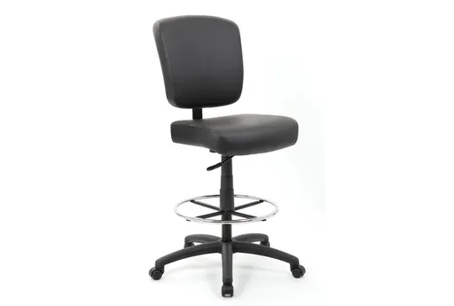 The Arcadia Black Big + Tall 300Lb Office Stool with Footring is perfect for your workspace. Designed for comfort and functionality, this stool is both adjustable and features a swivel base, ensuring ease of movement throughout your day. The sturdy construction supports up to 300 lbs, making it ideal for various users.