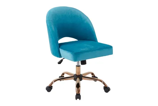 Experience comfort and style with the Archie Modern Blue Fabric Office Chair. This armless chair is designed with a modern aesthetic and features a stunning cruising blue color. Its adjustable height and rolling wheels make it a versatile addition to any office space.
