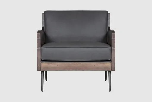 The Arden Slate Grey Leather Accent Arm Chair is a perfect addition to any living room or bedroom. Its rustic style and firm comfort level make it ideal for reading or lounging. The chair features a solid acacia frame, leather seat and back, and metal legs, ensuring durability and a sophisticated look. Track arms provide a sleek and modern touch. Foam cushions offer firm support for extended sitting. Metal legs add stability and a contemporary feel.