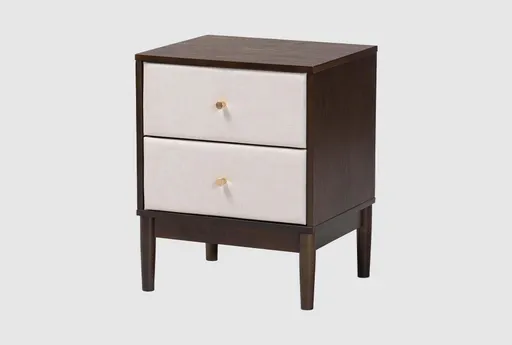 The Aria 2-Drawer Nightstand combines modern design with mid-century charm, making it a stylish addition to any bedroom. Its beige and wenge brown color scheme complements a variety of decor styles, while the solid rubberwood and ash veneered MDF construction ensures durability. The nightstand features two drawers, providing convenient bedside storage.