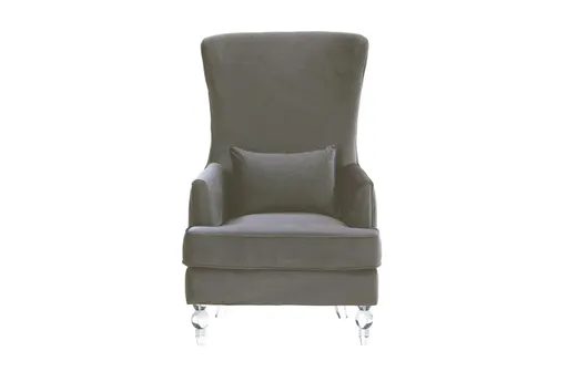 Introducing the Aria Grey Fabric Wingback Chair with Acrylic Legs, a perfect blend of modern design and timeless appeal. This wingback chair, upholstered in grey polyester fabric, offers both comfort and sophistication to any living space. Its acrylic legs add a touch of contemporary flair while the sturdy plywood construction ensures durability.
