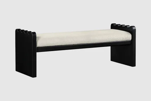 The Ariadne Cream Velour Fur Upholstered Bedroom Bench adds a modern touch to a bedroom or entryway with a cushioned seat upholstered in cream velour fur fabric and a rubberwood base. A plywood and MDF inner frame plus foam padding keep the seat stable and comfortable for everyday tasks like putting on shoes or holding a bag. Its low-profile silhouette lets it tuck neatly at the foot of a bed or beside a console for practical seating that supports daily routines.