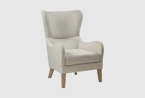 The Arianna Beige Wingback Arm Chair brings traditional elegance to any living space. Upholstered in linen-colored fabric with a beige/white color scheme, this armchair features a classic wingback design with reclaimed bisquit legs. The solid frame provides excellent support while maintaining a stylish silhouette. Perfect as a bedroom chair, reading chair, or accent chair. This design is the perfect bedroom chair, reading chair, club chair or accent chair for living room.