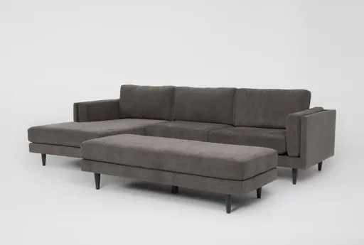 The Aries II Espresso 2 Piece Sectional with Left Arm Facing Chaise and Cocktail Ottoman brings comfort and style to your living room. With its modern design and cozy fabric, this sectional is perfect for relaxing and entertaining. The left arm facing chaise provides ample space to stretch out, while the cocktail ottoman adds versatility and functionality. Modern espresso fabric upholstery Includes left arm facing chaise and cocktail ottoman Durable 100% polyester material