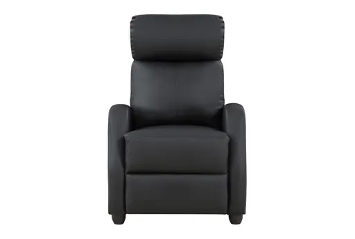 Experience the perfect blend of modern style and casual comfort with the Armando Black Faux Leather Push Back Recliner. This sleek recliner, upholstered in luxurious black faux leather, is designed to enhance any living space with its timeless appeal and solid construction.