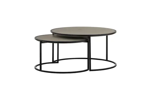 The Arni Concrete and Black Metal 2 Piece Nesting Coffee Table Set brings modern functionality and style to your living room. With its concrete tops and sturdy metal frames, this set is perfect for any contemporary space. The nesting feature offers versatility and convenience, making it both practical and stylish.
