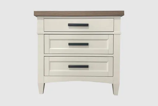 The Arris White Wood 29" 3 Drawer Nightstand with USB is a versatile addition to any bedroom. Crafted from birch veneer and solid poplar, this piece blends the casual style with functional storage solutions. The cotton color and tapered legs provide a timeless look that complements various decor themes.